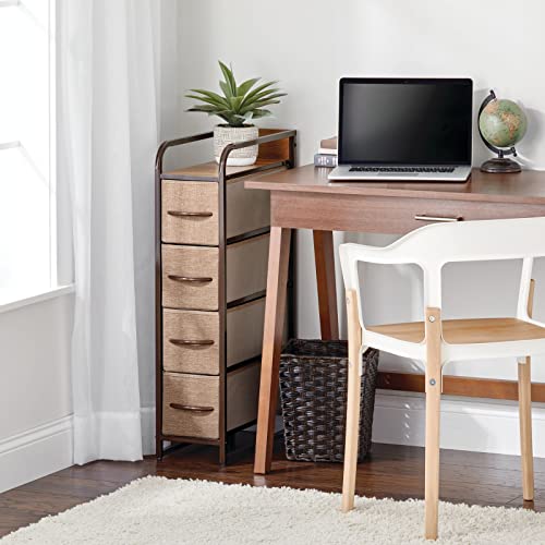MDesign Comodino multiuso con 4 cassetti - Organizer in stoffa, metallo e legno - Cassettiera snella e ideale per camera da letto, corridoio o dispensa - marrone