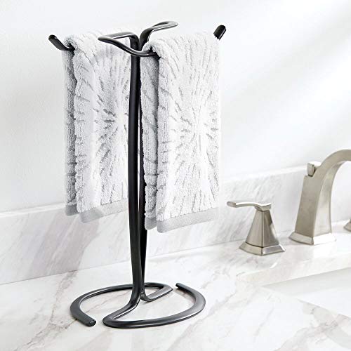 MDesign Compatto portasciugamani autoportante - Appendino per accessori bagno, asciugamani, piccole tovaglie ecc. - Porta asciugamani da bagno in metallo per 2 piccoli asciugamani - nero