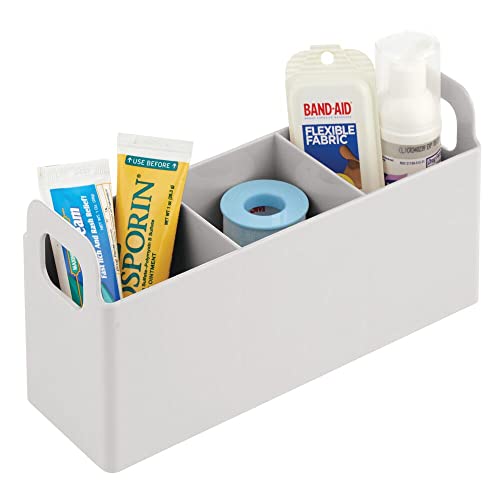 MDesign Contenitore cosmetici con manici - Pratico organizer per bagno a 3 scomparti, per conservare cosmetici e kit di pronto soccorso - Organizzatore medicine in plastica senza BPA - grigio chiaro