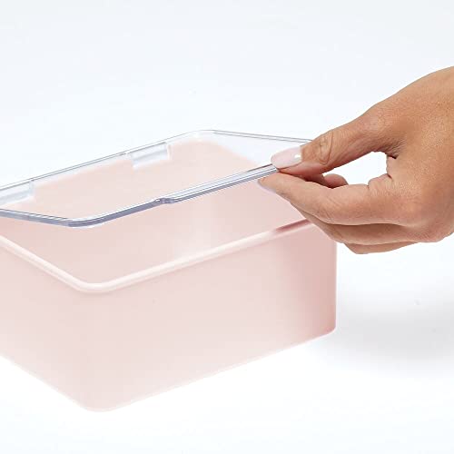 MDesign Contenitore portagiochi in plastica con coperchio - Porta giochi ideale per pupazzetti, bamboline, puzzle, macchinine, pennarelli - Organizer ideale per la cameretta - trasparente/rosa chiaro