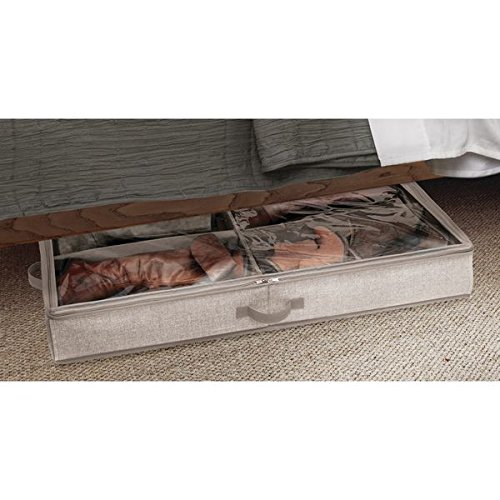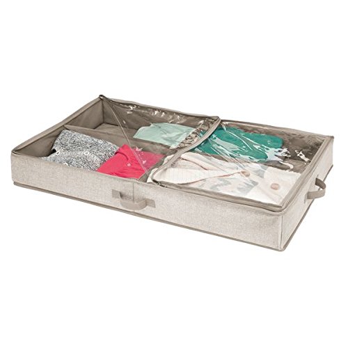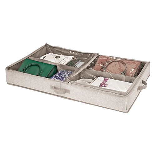 MDesign Contenitore sottoletto con 4 vani - Contenitori sottoletto con Cerniera Ideale per Scarpe e Vestiti - Cassettone sottoletto - Beige