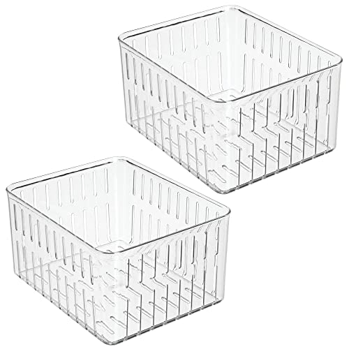 MDesign Set da 2 contenitori alimenti senza coperchio - Grande modello di contenitori in plastica per alimenti di ogni tipo - Contenitore frigo multiuso con aperture laterali - trasparente