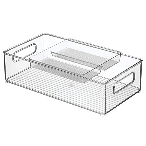 MDesign Set da 2 Contenitori in plastica con cassetto - Organizer cucina e contenitore frigo per barattoli, alimenti e altro ancora - Ideale per confezioni e vasetti - trasparente