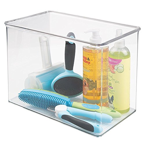 MDesign contenitori di plastica con Coperchio per Articoli per Animali - Perfetta per Accessori Animali, Shampoo o Giocattoli per Cani - Colore: Trasparente