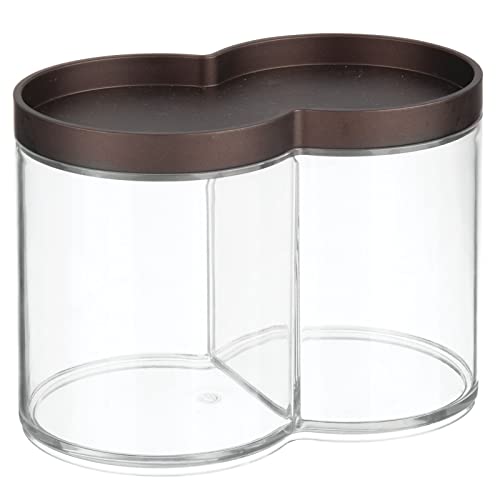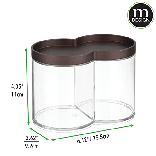 MDesign Contenitori in plastica impilabili - Pratico barattolo diviso in due settori con coperchio - Ideale per accessori da bagno come dischetti di cotone e cotton fioc - trasparente/bronzo