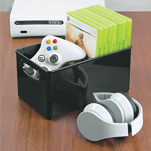 MDesign Set da 2 contenitori in plastica porta DVD - Perfetti per videogiochi, Blu Ray o come organizer ufficio - nero