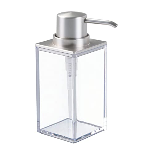 MDesign Set da 2 Dispenser sapone ricaricabile - Elegante dosatore sapone in plastica - Portasapone ideale per bagno e cucina - trasparente/argento