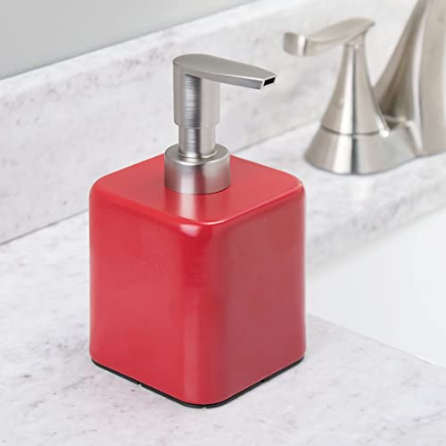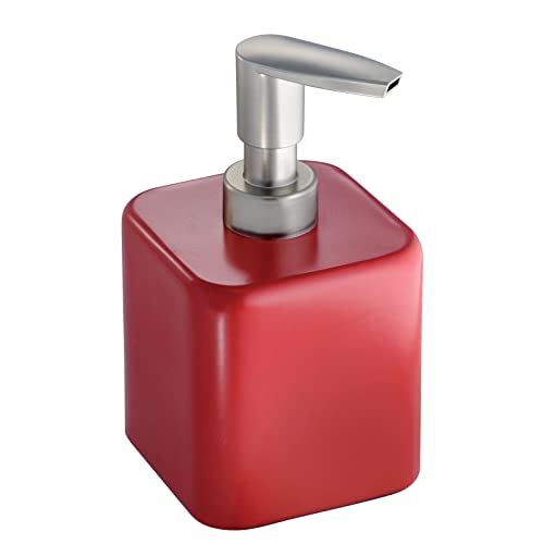MDesign dispenser sapone ricaricabile - quadrato - colore rosso - perfetto per il bagno e la cucina - capacità 414 ml