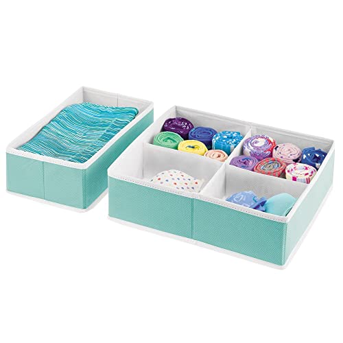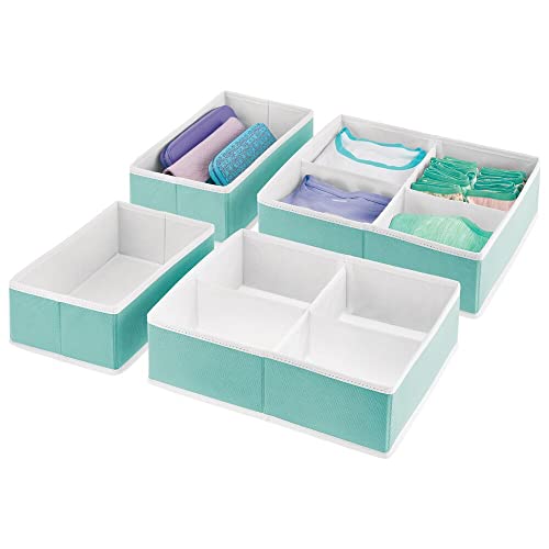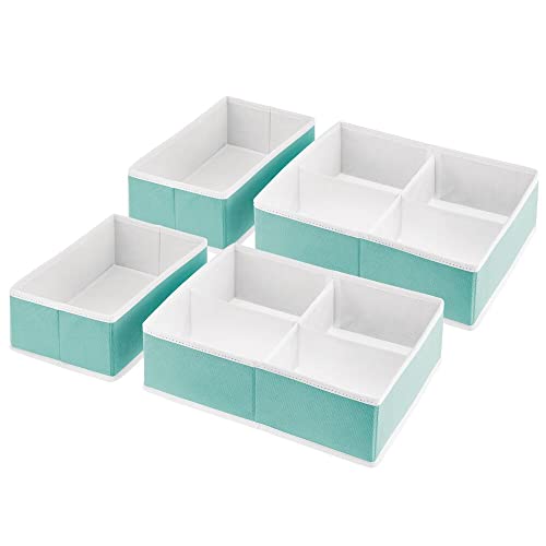 MDesign Set da 4 divisori per cassetti Pieghevoli in Tessuto - Scatole per armadi in 2 Misure per Accessori e Biancheria Intima - Scatole Porta Oggetti a 10 Scomparti totali - Turchese/Bianco