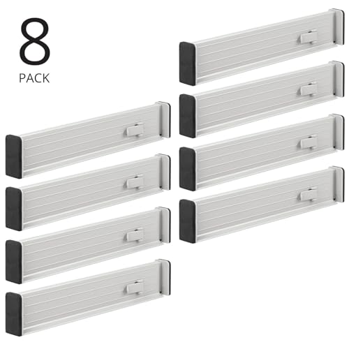 MISURE REGOLABILI: Gli organizer per cassetti biancheria del set da 8 misurano 33,7 cm x 3,2 cm x 6,4 cm ciascuno, estensibile fino a 52,7 cm, caratteristica utile per rispondere a esigenze diverse.