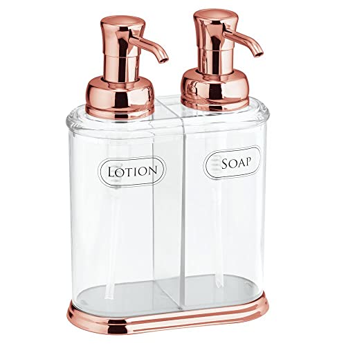 MDesign Doppio dispenser sapone - Portasapone bagno elegante in plastica - Portasapone liquido ricaricabile per sapone e crema mani - trasparente e oro rosato