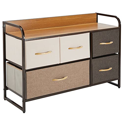 MDesign Elegante cassettiera con 1 cassetto grande e 4 piccoli - Capiente canterano ideale per qualunque stanza della casa - Comò in metallo, legno MDF e tessuto - multicolore, marrone