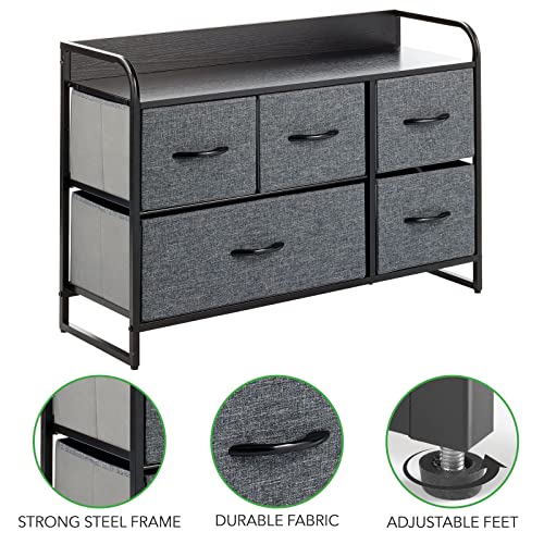 MDesign Elegante cassettiera con 1 cassetto grande e 4 piccoli - Comò in metallo, legno MDF e tessuto - Capiente canterano ideale per qualunque stanza della casa - nero/grigio