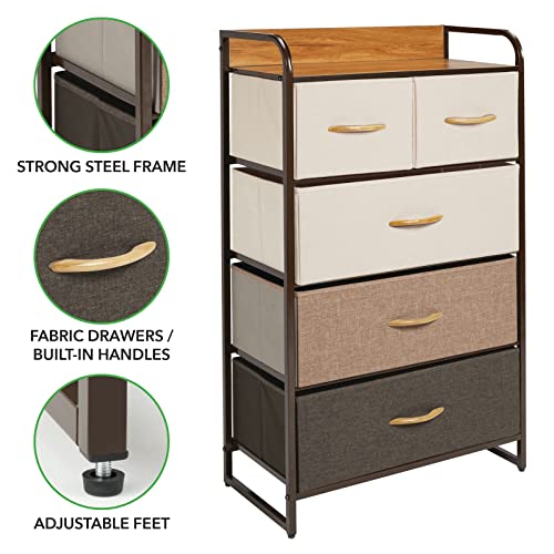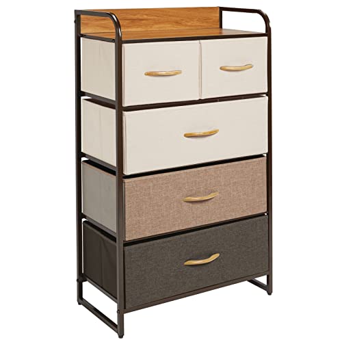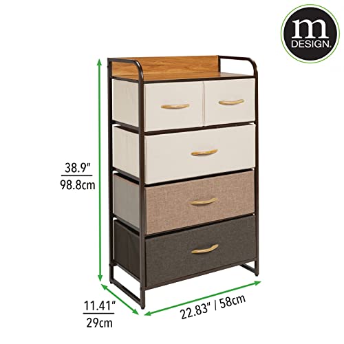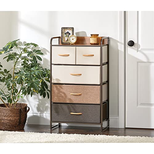 MDesign Elegante cassettiera con 3 cassetti grandi e 2 piccoli - Capiente canterano ideale per qualunque stanza della casa - Comò in metallo, legno MDF e tessuto - multicolore, marrone