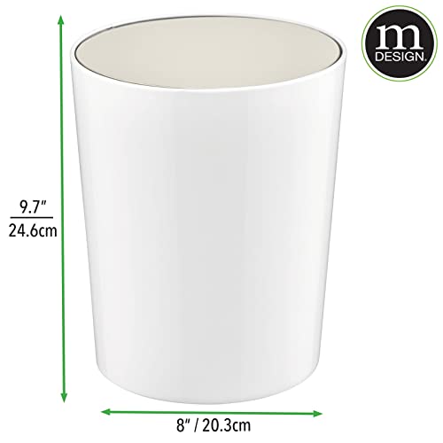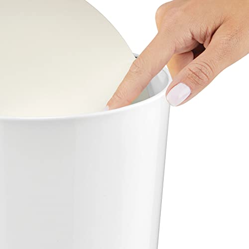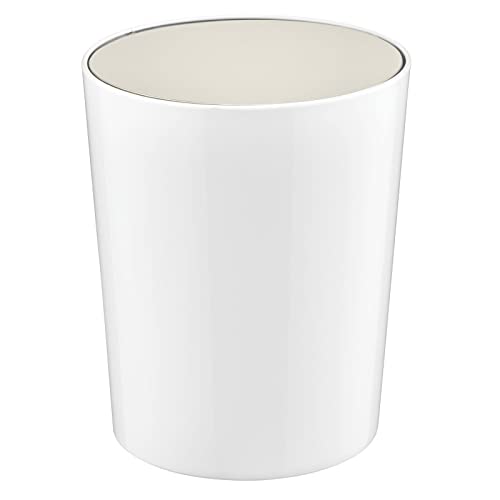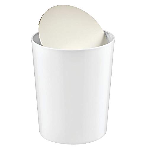 MDesign Elegante cestino bagno - Pratico cestino plastica con coperchio basculante - Cestino gettacarte ideale per bagno, ufficio, cucina - bianco ed argento opaco