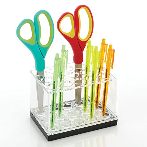 MDesign Funzionale organizer cosmetici - Pratico contenitore per prodotti cosmetici come mascara e pennelli - Porta trucchi con 15 scomparti - trasparente/nero