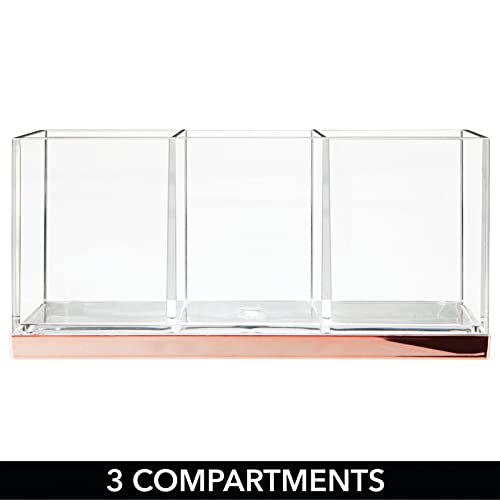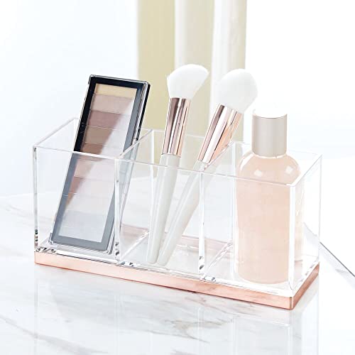 MDesign Grande organizer trucchi a 3 scomparti - Porta trucchi trasparente in plastica - Pratico porta pennelli trucco - trasparente e oro rosato
