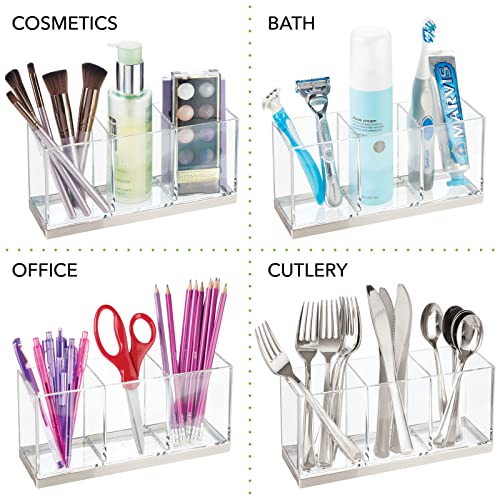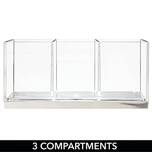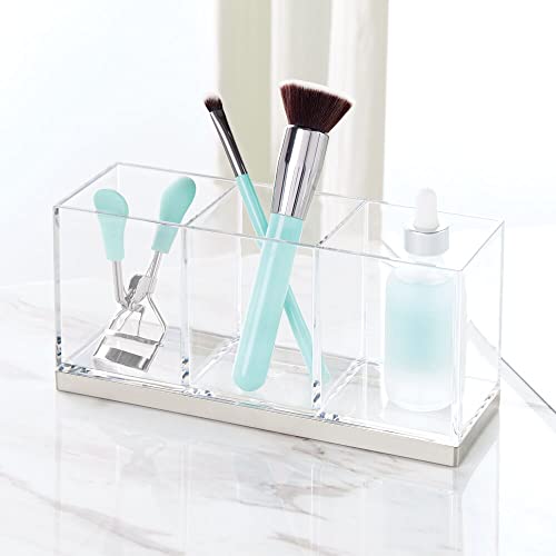 MDesign Grande organizer trucchi a 3 scomparti - Porta trucchi trasparente in plastica - Pratico porta pennelli trucco - trasparente e argento
