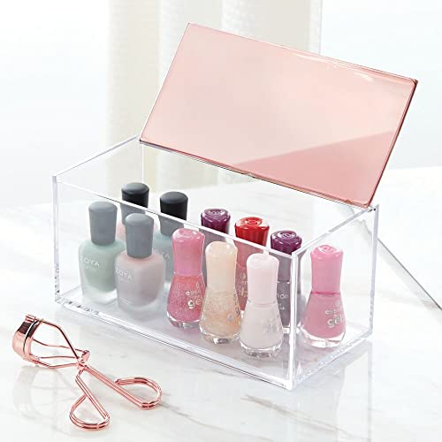 MDesign Grande valigetta trucchi con specchio - Ideale portaoggetti per bagno o toeletta in plastica - Pratico organizer bagno per rossetti, correttori & Co. - trasparente/oro rosato