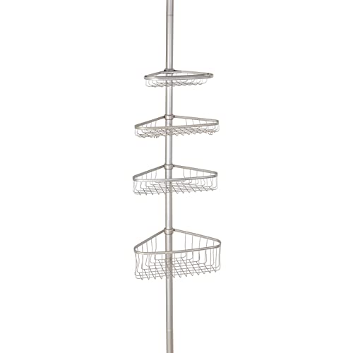 MDesign Mensola per doccia regolabile - Portaoggetti doccia allungabile in metallo senza trapanare - Ideale ripiano bagno per shampoo, rasoi, spugne ed altri accessori doccia - Argentato