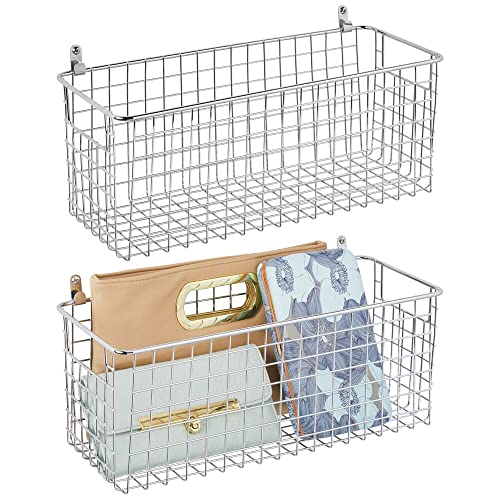 MDesign Set da 2 Mensole da parete in metallo - Portaoggetti da appendere di media misura per ingresso, camera da letto, altro - Mensola svuotatasche per lettere, occhiali o accessori bagno - argento