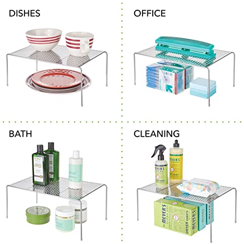 MDesign Set da 2 Mensole porta piatti impilabili per la cucina - Ripiano angolare antiscivolo in metallo - Grande scolapiatti da appoggio per tazzine e utensili - argento