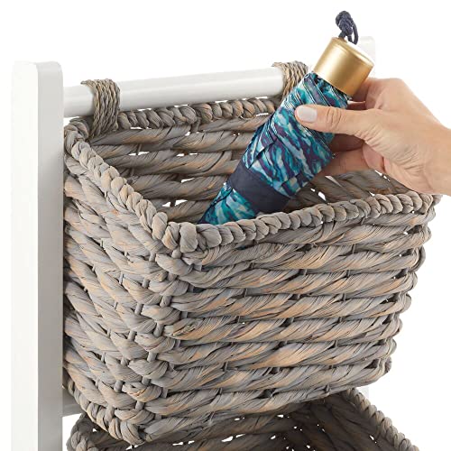 MDesign Mobiletto salvaspazio con pratici ripiani a cesta - Scaffale portaoggetti in legno e giacinto d'acqua - Mobile con 3 ceste portaoggetti per cucina e bagno - bianco/grigio