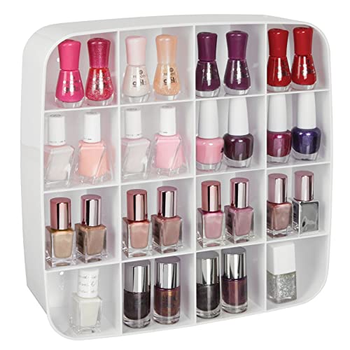 MDesign Moderno espositore da parete in plastica senza BPA - Scaffale con 16 scomparti per smalti, profumi, oggettistica - Perfetto come portaspezie in cucina - bianco