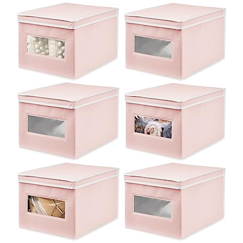 MDesign Set da 6 Organizer Armadio con Coperchio e Finestra - Capienti scatole per armadi perfette per la Camera dei Bambini - Contenitori portaoggetti - Rosa/Bianco
