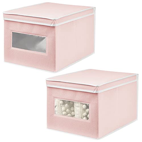 MDesign Set da 2 Organizer Armadio con Coperchio e Finestra - Capienti scatole per armadi perfette per la Camera dei Bambini - Contenitori portaoggetti - Rosa/Bianco