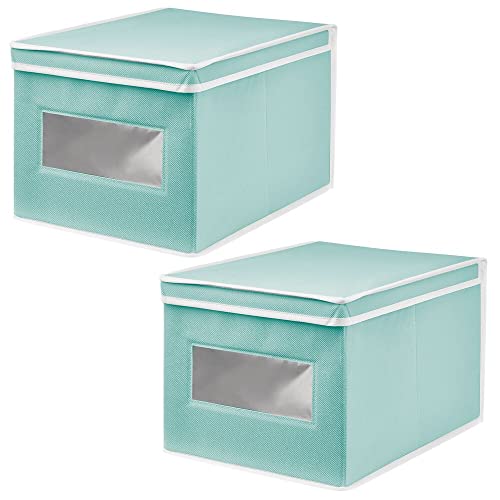 MDesign Set da 2 Organizer Armadio con Coperchio e Finestra - Capienti scatole per armadi perfette per la Camera dei Bambini - Contenitori portaoggetti - Turchese/Bianco
