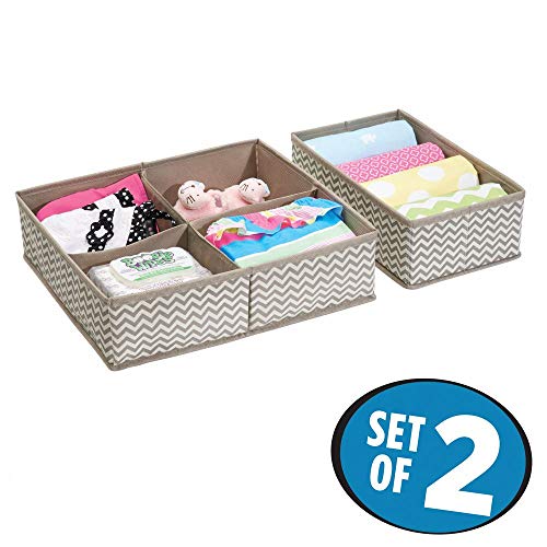 MDesign Organizer cassetti baby e neonato - Ideale divisorio cassetto per la cameretta e gli armadi dei bambini - Set da 2 scatole portaoggetti con 5 scomparti - Materiale traspirante