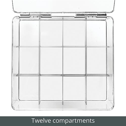MDesign Organizer cucina - Contenitore in plastica per la cucina e la dispensa - Scatola con coperchio suddivisa in 12 scomparti per tè, caffè, spezie e altre provviste - trasparente