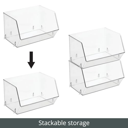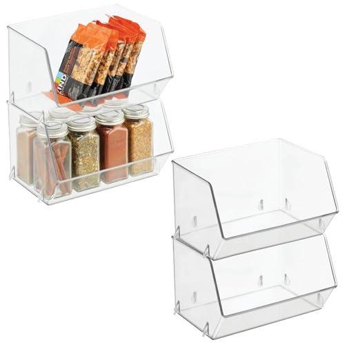 MDesign Organizer frigorifero in plastica - Scatola da cucina con parte anteriore aperta per frigo e armadietti - Contenitori cibo ideali per diversi tipi di alimenti - Set da 4 - trasparente