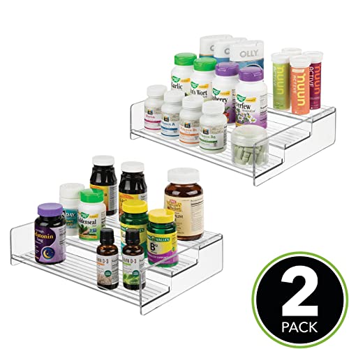 MDesign Organizer per medicinali, vitamine, integratori - Portaoggetti con Scomparti in plastica - Comodo Porta Medicine con 3 Ripiani a Livelli - Set da 2 - Trasparente