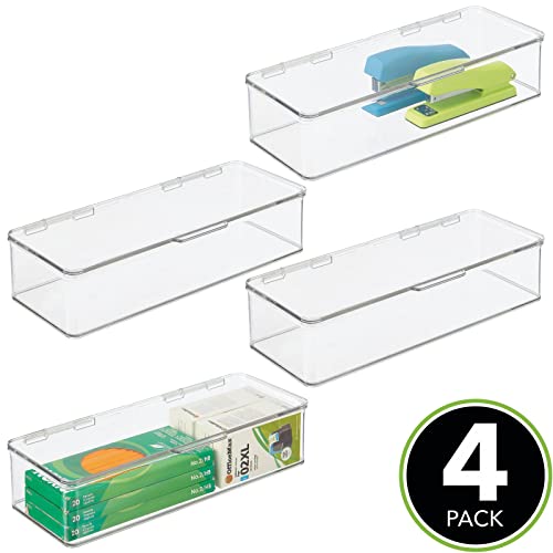 MDesign Set da 4 Organizer portaoggetti da scrivania - Scatola in plastica priva di BPA impilabile per l'ufficio - Scatola con coperchio per penne, gomme e altri articoli di cancelleria - trasparente