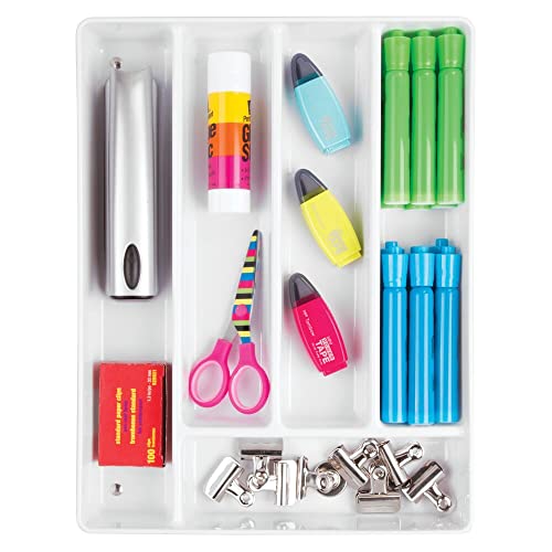MDesign Organizer scrivania antiscivolo - Porta oggetti ufficio con 5 scomparti - Pratico portapenne da scrivania e accessori cancelleria in plastica e metallo, ideale divisorio per cassetti - bianco