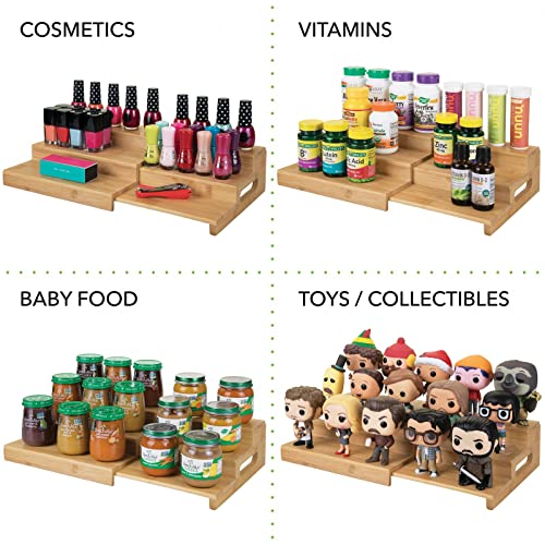 MDesign Organizer per spezie e aromi - Scaffale allungabile a 3 livelli da cucina - Ripiano per spezie in legno - color bambù