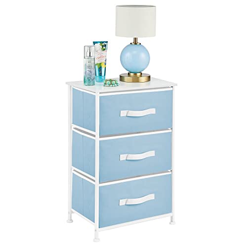 MDesign Organizer verticale con cassetti - Comodino con 3 scomparti in stoffa, metallo, MDF e plastica - Ideale per le camere da letto o camerette - azzurro/bianco