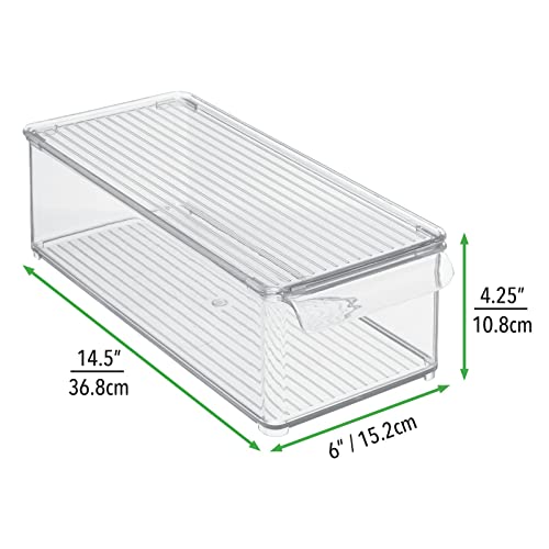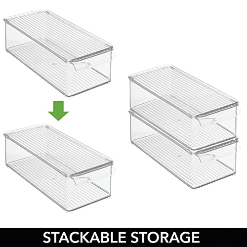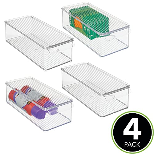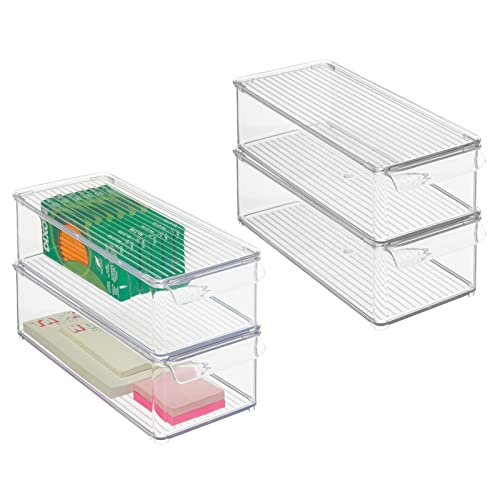 MDesign Set da 4 box in plastica con coperchio e manici - Piccolo contenitore porta oggetti per ufficio e scrivania - Portaoggetti rettangolare in robusta plastica - trasparente