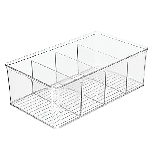 MDesign Set da 2 box in plastica ideali per cucina, ufficio e bagno - Ampio contenitore ufficio diviso in 4 scomparti - Portaoggetti da scrivania in robusta plastica - trasparente