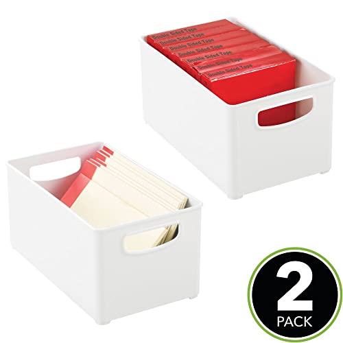 MDesign Set da 2 box in plastica ideali in cucina, ufficio e bagno - Pratico contenitore porta oggetti con manici integrati - Portaoggetti in robusta plastica - bianco