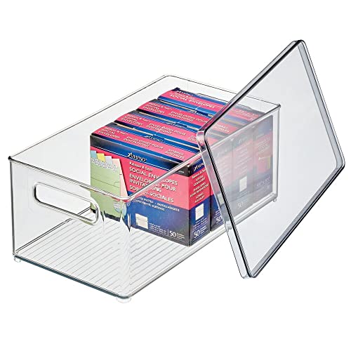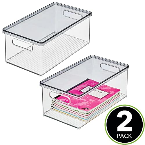 MDesign Set da 2 box in plastica per ufficio o casa - Pratico contenitore porta oggetti con coperchio per cancelleria - Portaoggetti trasparente in resistente plastica - trasparente/color carbone