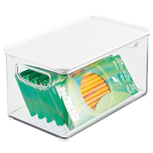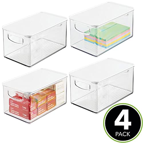 MDesign Set da 4 box in plastica per ufficio o casa - Pratico contenitore porta oggetti con coperchio per cancelleria - Portaoggetti trasparente in robusta plastica - trasparente/bianco