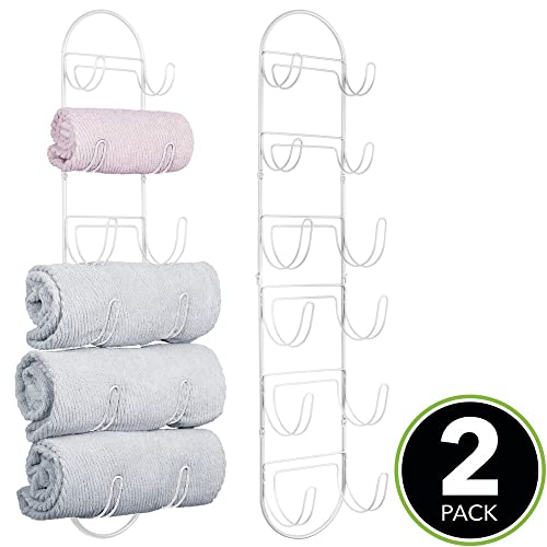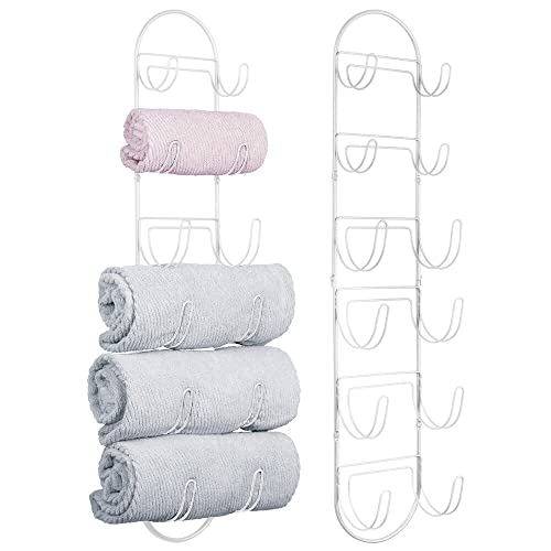 MDesign Set da 2 Porta asciugamani da muro - Spazioso portasalviette bagno con 6 scomparti - Appendi asciugamani perfetto anche per la toilette degli ospiti - bianco