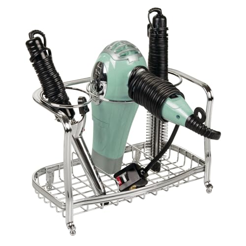 MDesign Porta phon per il bagno - Organizer bagno perfetto per phon, piastra e accessori - Porta asciugacapelli indipendente - argento