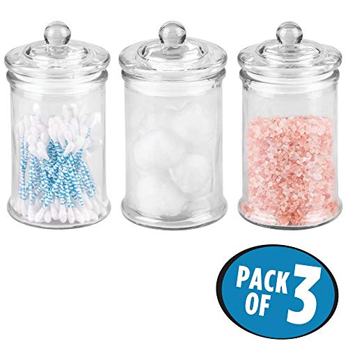 MDesign - Set da 3 porta batuffoli cotone - Versatile porta cotton fioc e dischetti dal design discreto - Contenitore batuffoli cotone - In vetro: trasparente