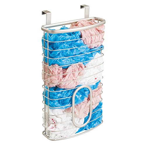 MDesign Porta buste plastica da appendere alla porta - Organizer cucina in metallo - Portasacchetti da fissare senza forare le pareti, per buste della spesa e sacchetti refrigeranti - argento opaco