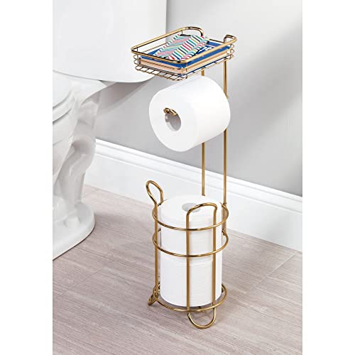 MDesign Porta carta igienica da terra - Elegante contenitore portarotolo carta igienica con contenitore per salviettine intime - Comoda piantana bagno con spazio per 2 rotoli di scorta - Color ottone
