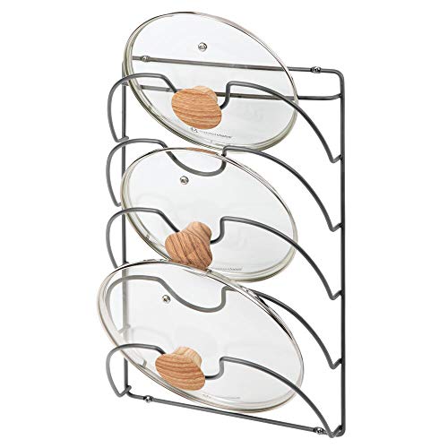 MDesign Porta coperchi verticale - Pratici accessori cucina per coperchi di varie misure - Maneggevole accessorio salvaspazio in metallo per utensili da cucina - grigio
